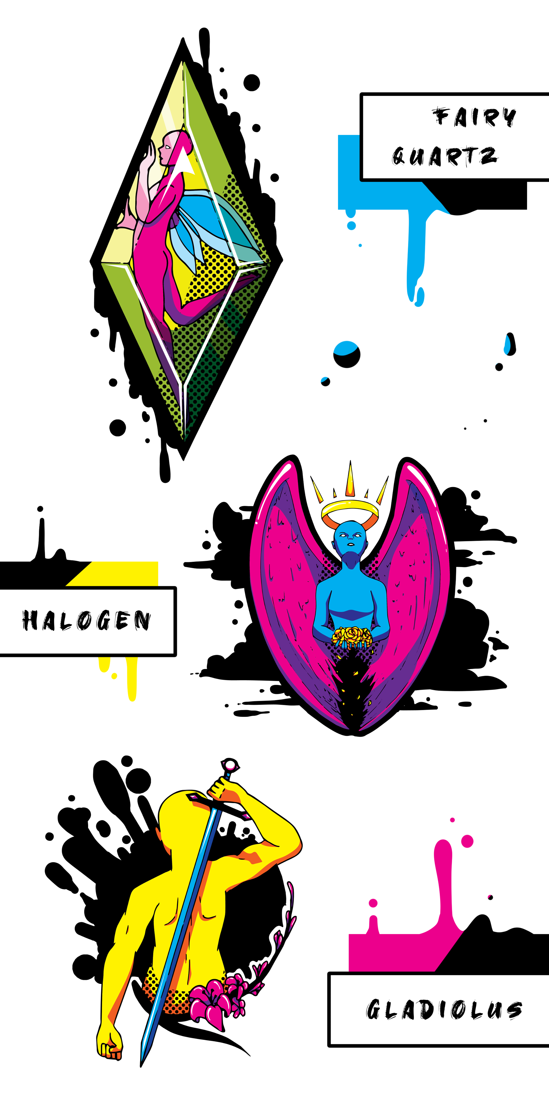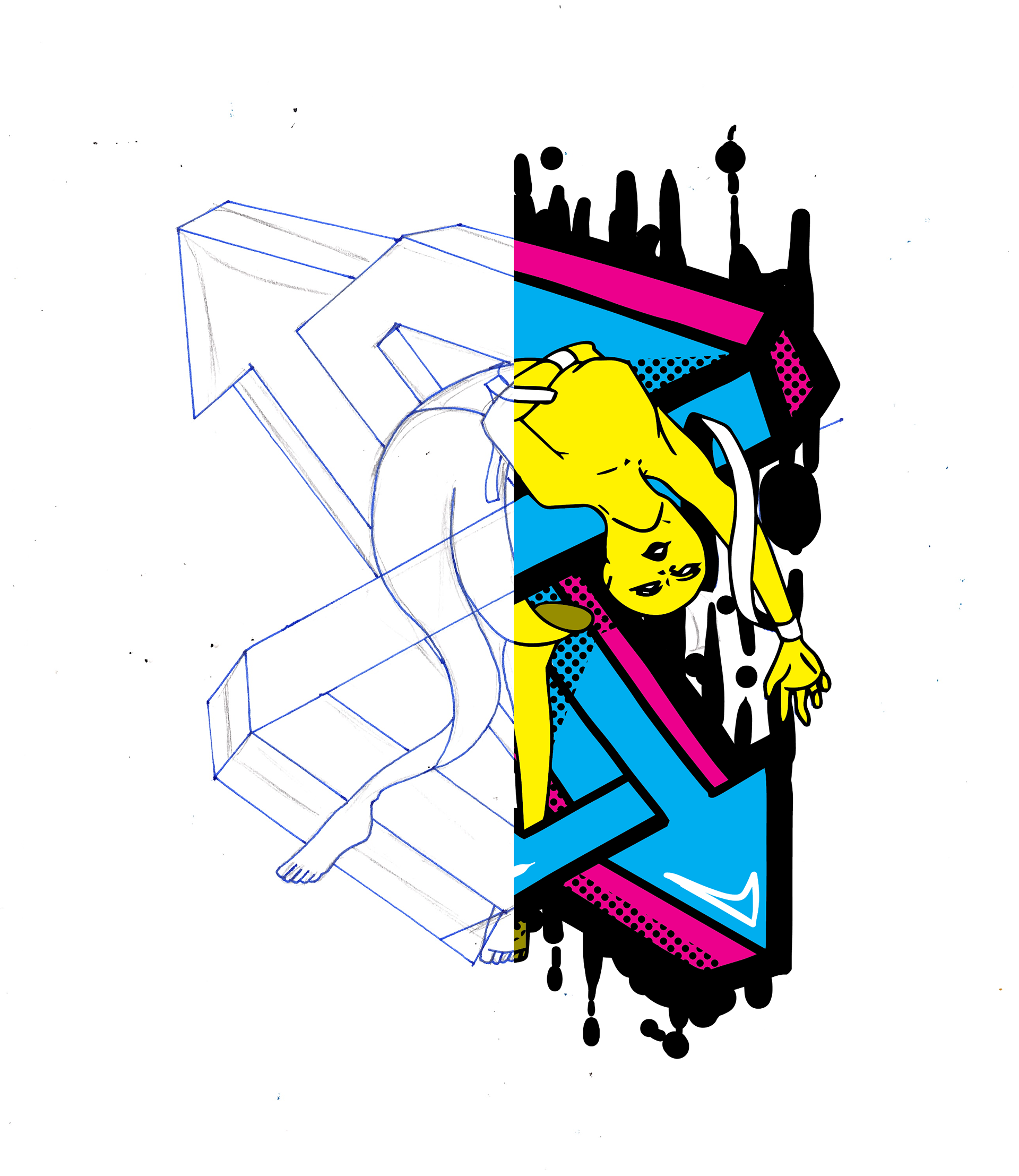 This series originally started with just one drawing, but I wanted to see how many more could be made with the same basic color scheme but abstract and graffiti vibe. Color palettes don't have to be elaborate for banger art--