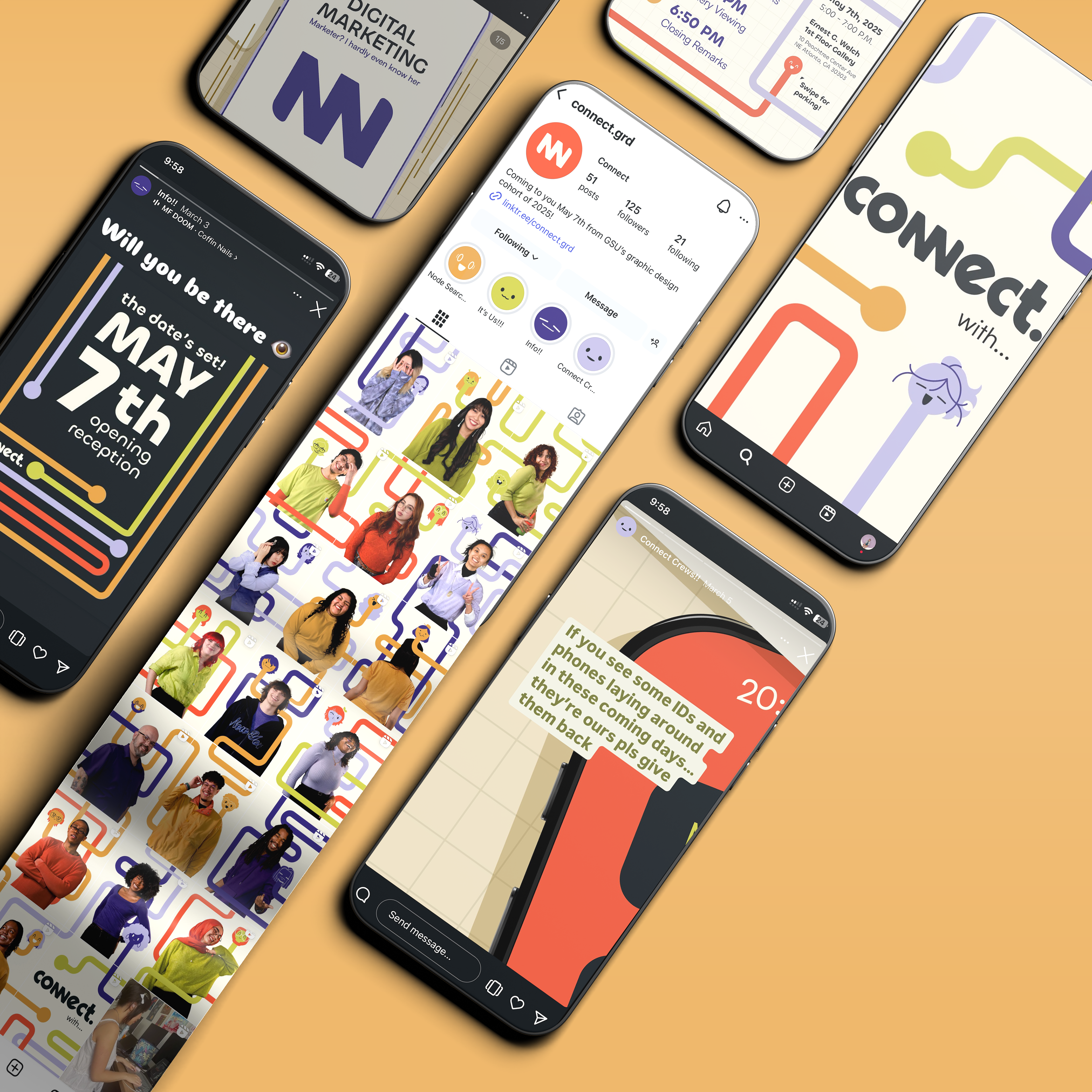 Myself and a team of designers were given the results of a cohort-wide survey: what defined us as a group, as designers, and what we wanted to communicate about ourselves to other people. Using those results, we established branding that would then be used across all material for the exhibition.
