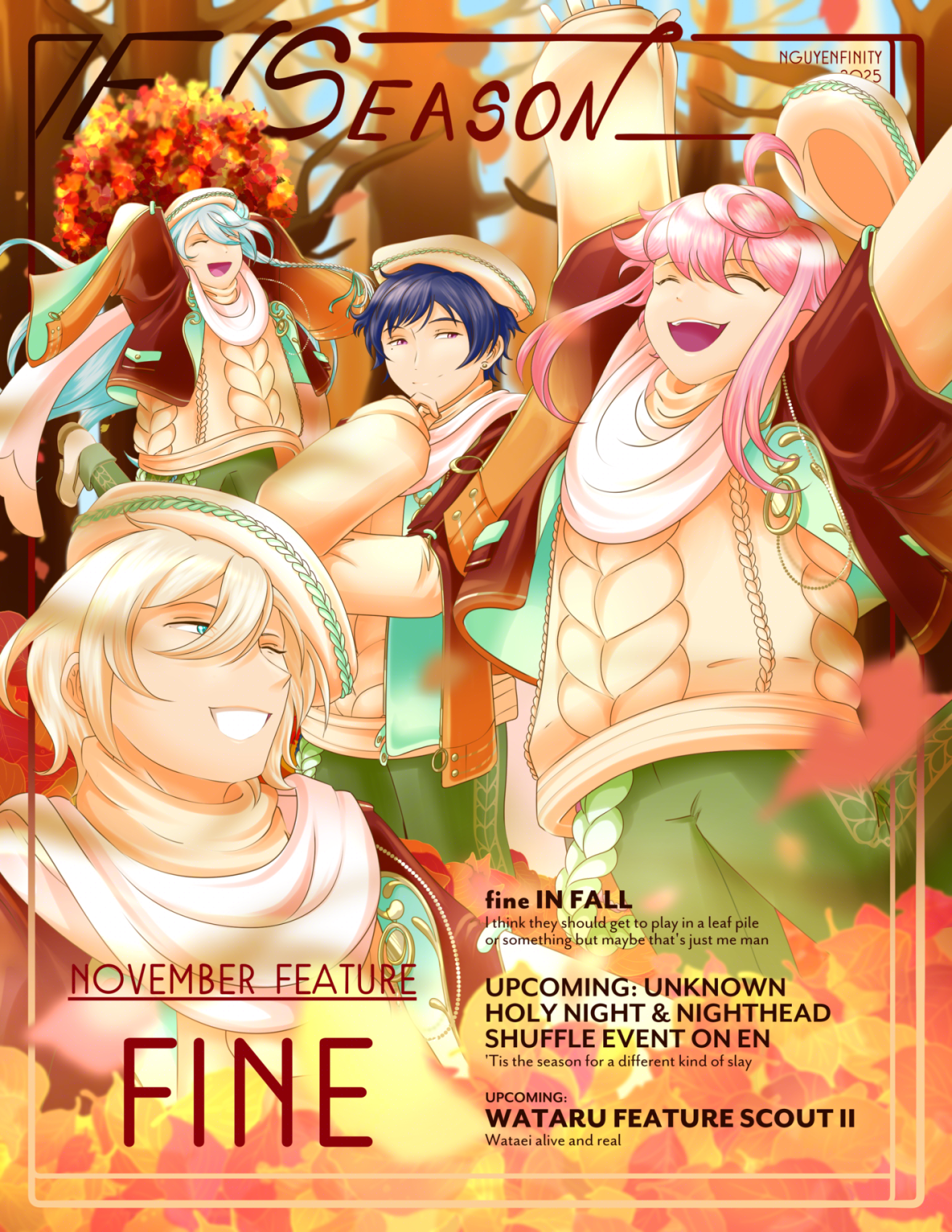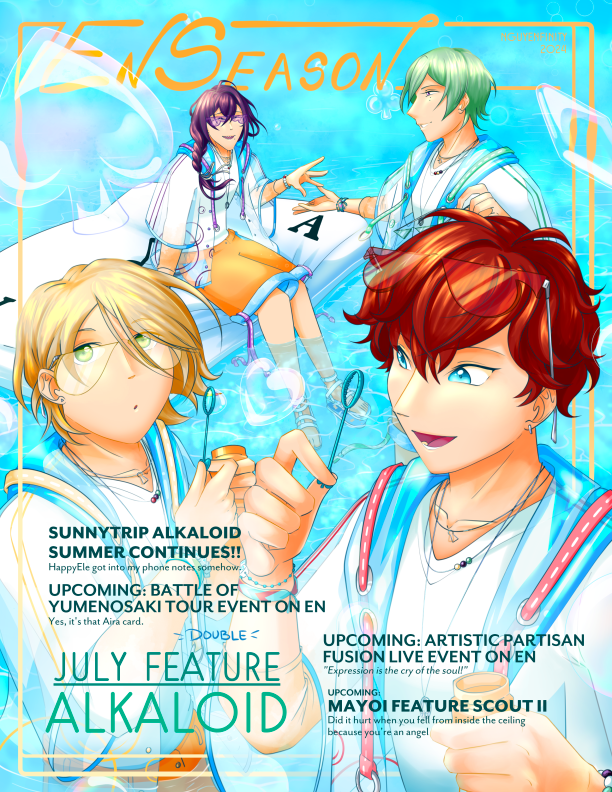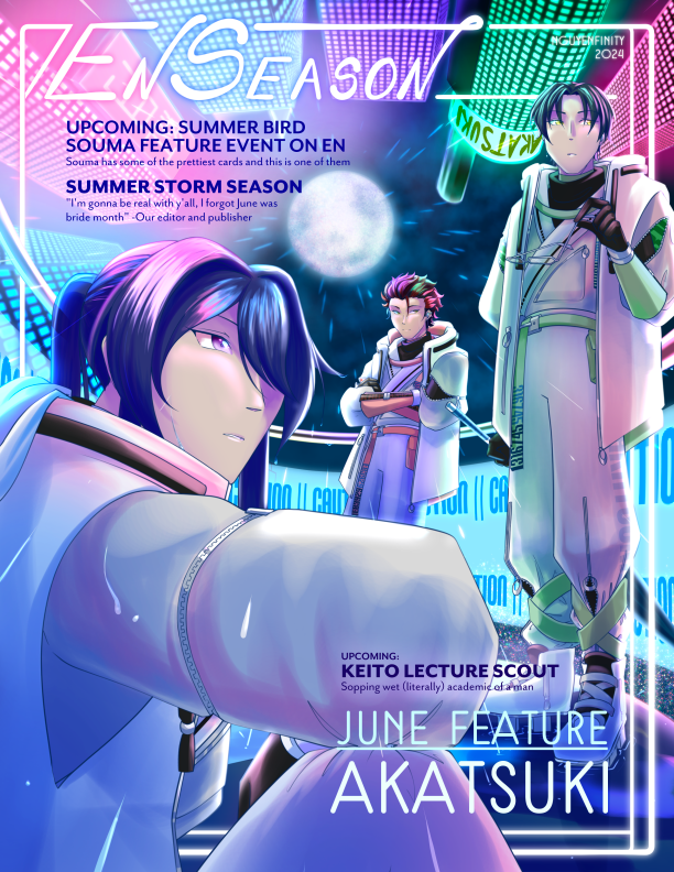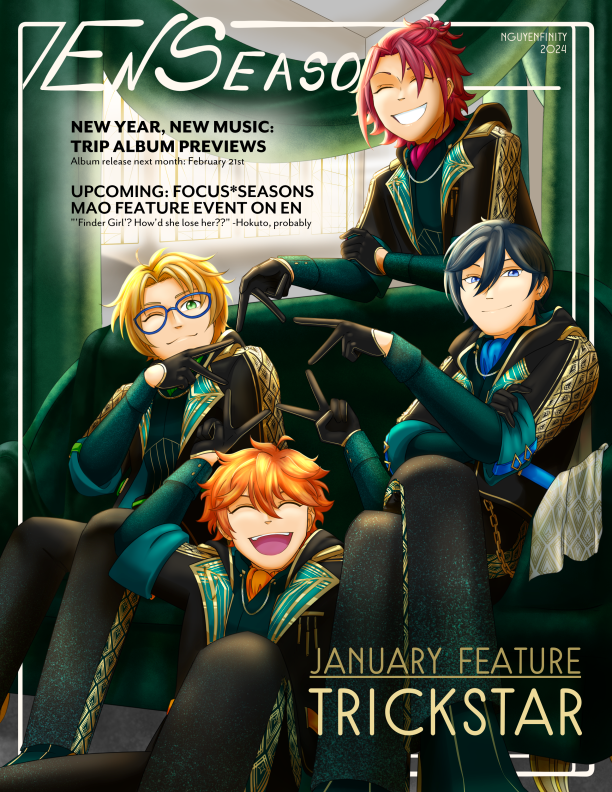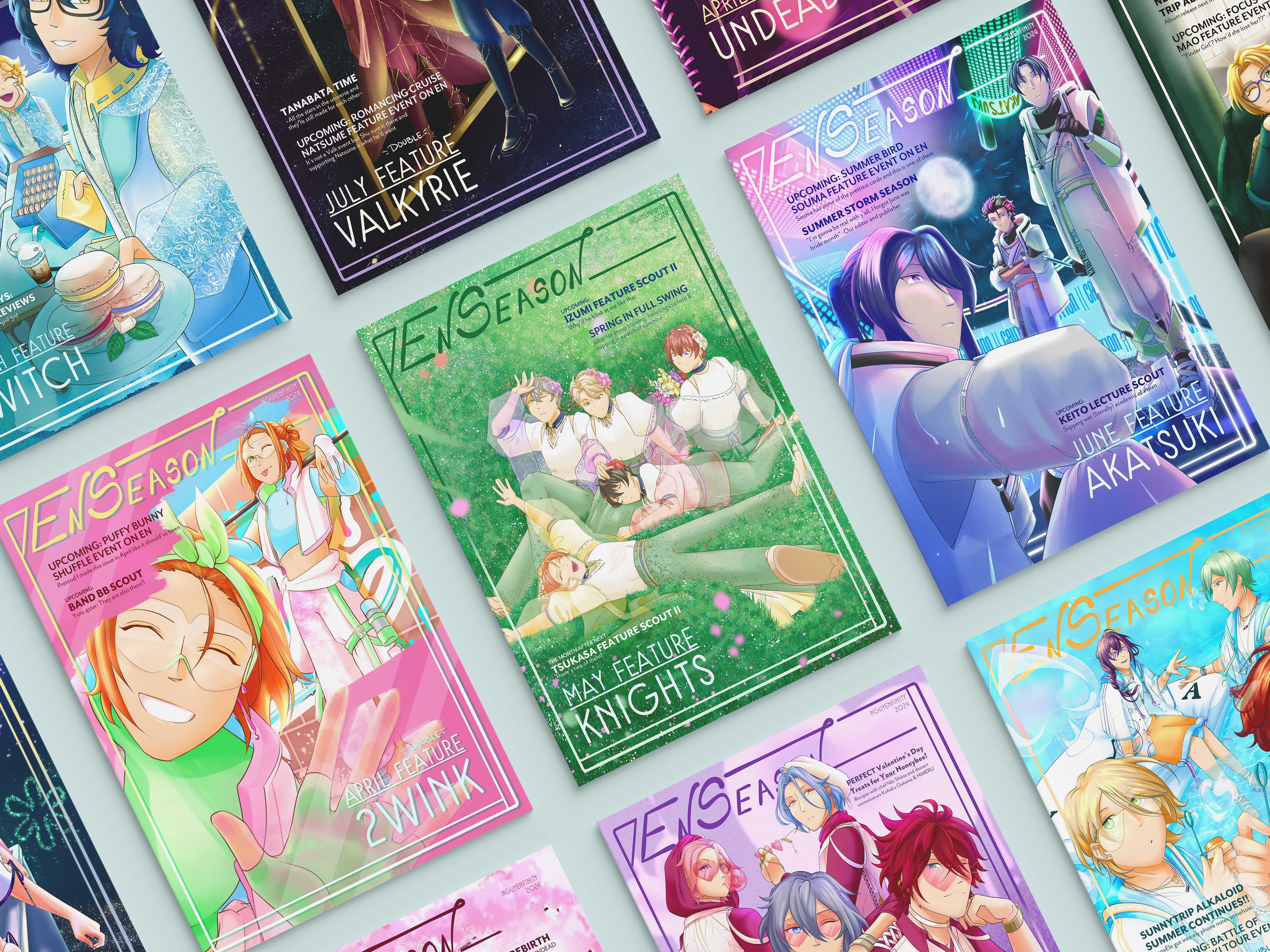 A series for the fans by a fan, EnSeason is a fashion magazine cover series of monthly releases highlighting music groups from the franchise Ensemble Stars! Each issue aims to show fans their favorite characters in ways and outfits that the game developers haven't yet done while still maintaining the aspects that the fandom knows and loves.